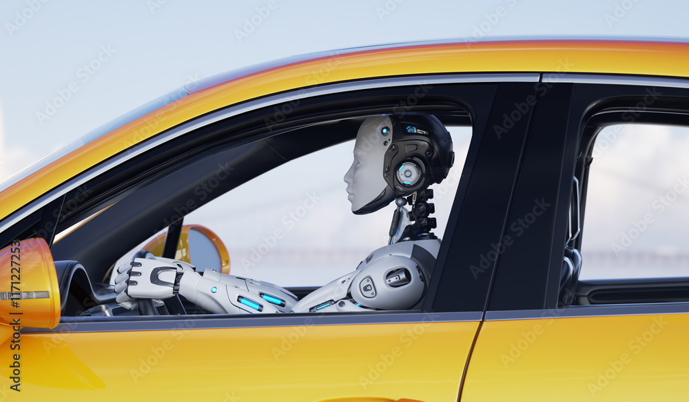 Robot driving a car