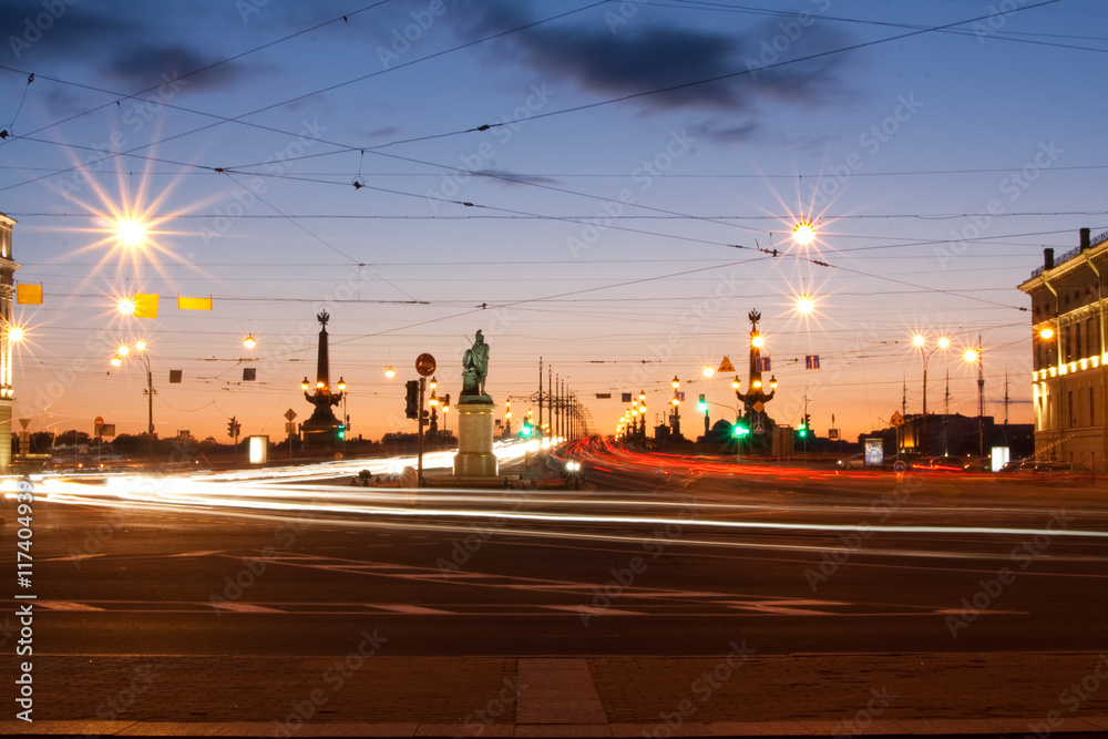White Nights. The exit of the Troitsky Bridge, Saint-Petersburg Russia.