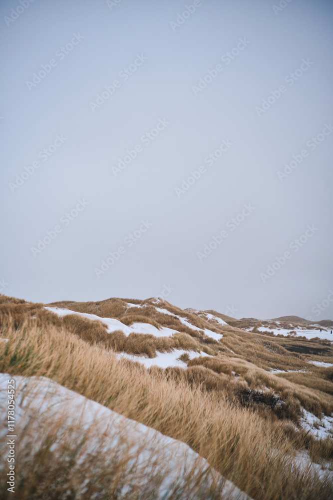 Snow covered dunes at denmarks coastline. High quality photo