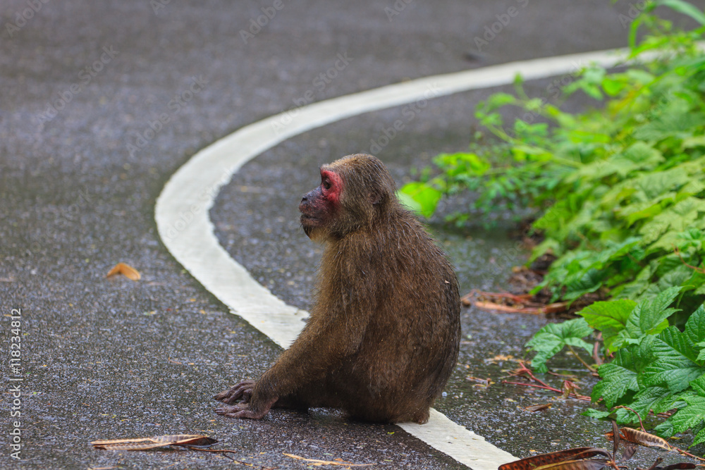 Stump-tailed macaque (Macaca arctoides ) in nature