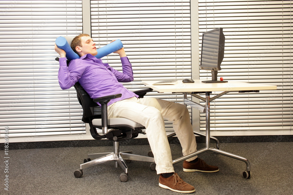short break - relaxation with foalm at work station in office