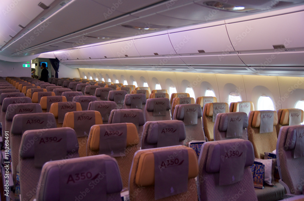 DUSSELDORF - JULY 22, 2016: Singapore Airlines Economy Class on board of Airbus A350