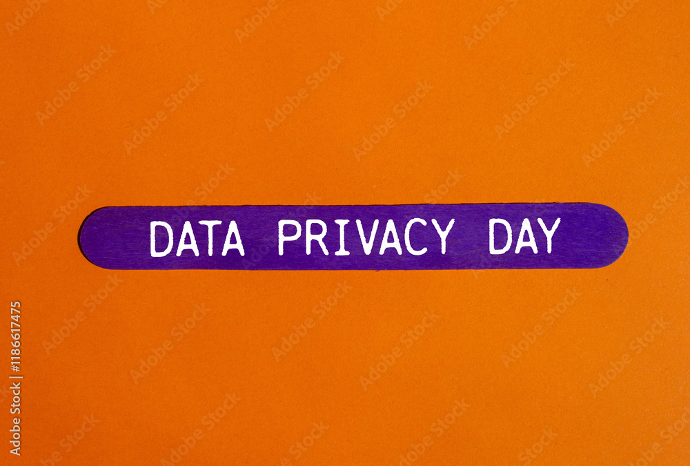 Data privacy day message written on purple wooden stick with orange background. Conceptual data privacy day symbol. Copy space.