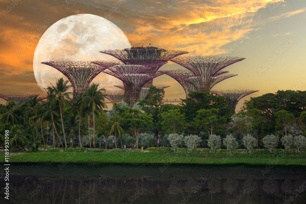 Witness the breathtaking and stunning Supermoon illuminating the Supertree Grove in Singapore