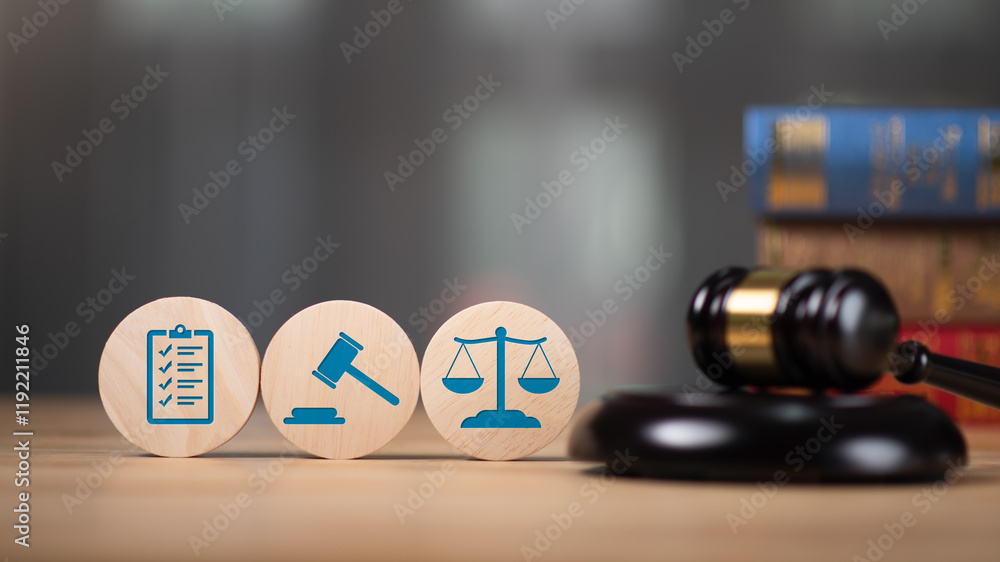 Wooden judge gavel on table ,justice in punishment of offenses and criminal verdicts ,concept of law and justice ,legal contract consulting ,court proceedings ,planning for court proceedings