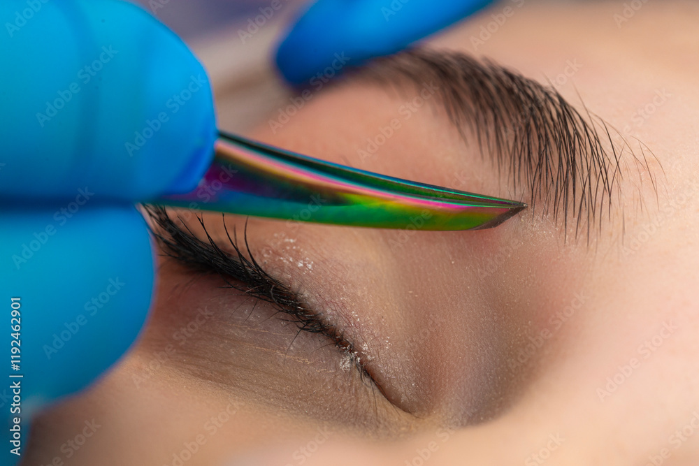 Closeup of Hands of Professional Make-up Artist Doing Long-lasting Styling of Eyebrows As Professional Make-up and Facial Care.