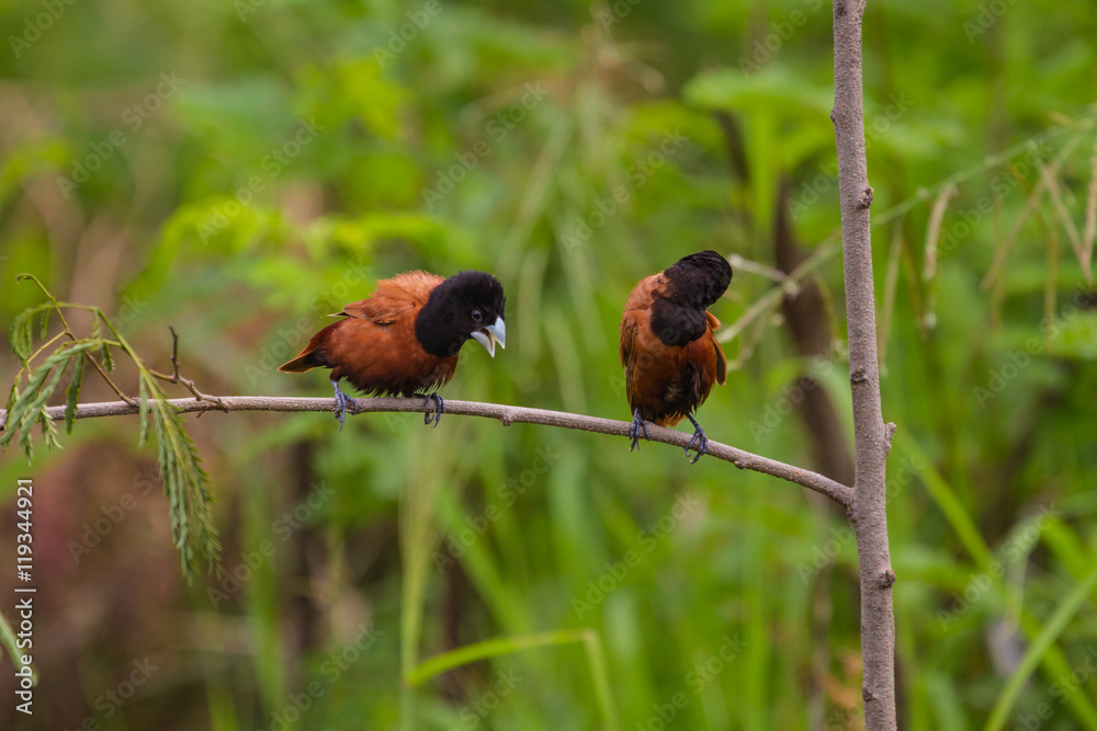 Chestnut Munia perching on a branch