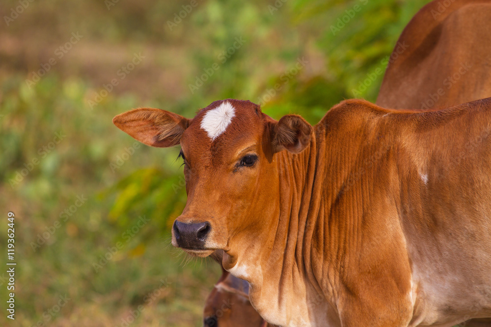 cow eating grass at the field