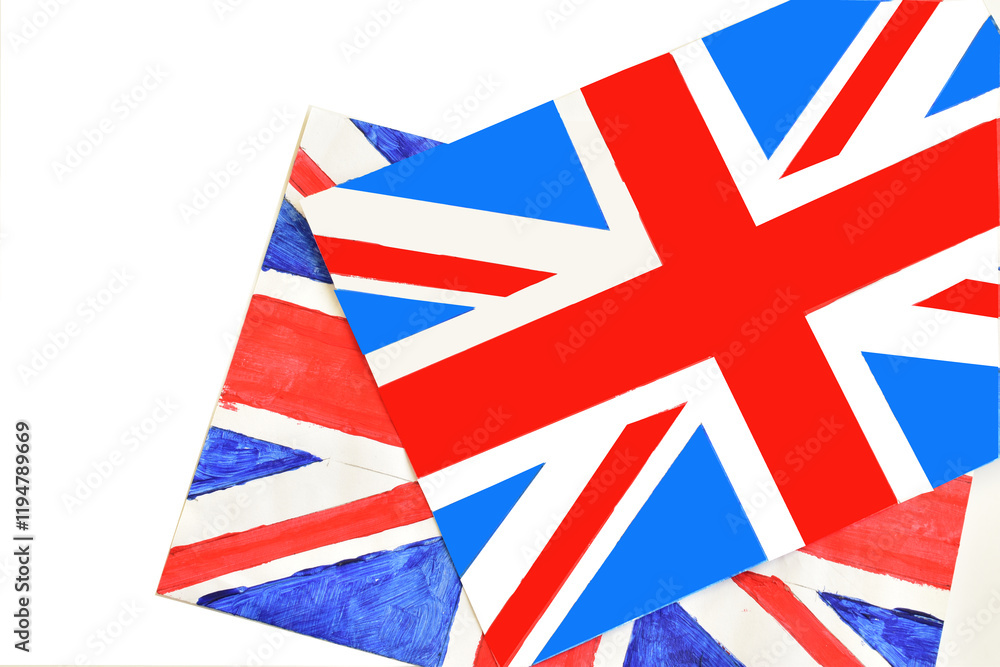 Flags of Great Britain painted with watercolors on a sheet of paper.