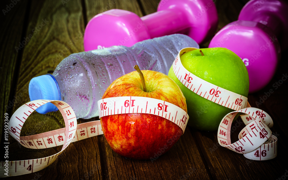 Healthy eating, fitness and weight loss concept, tape measure, a