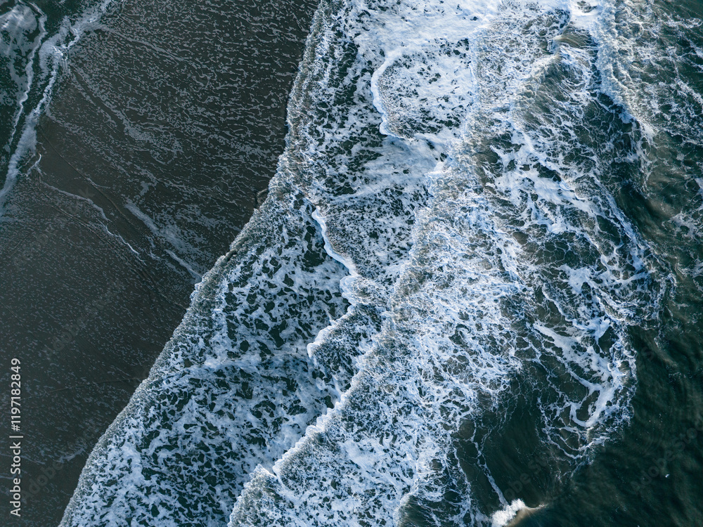 Wave crashing aerial view. High quality photo