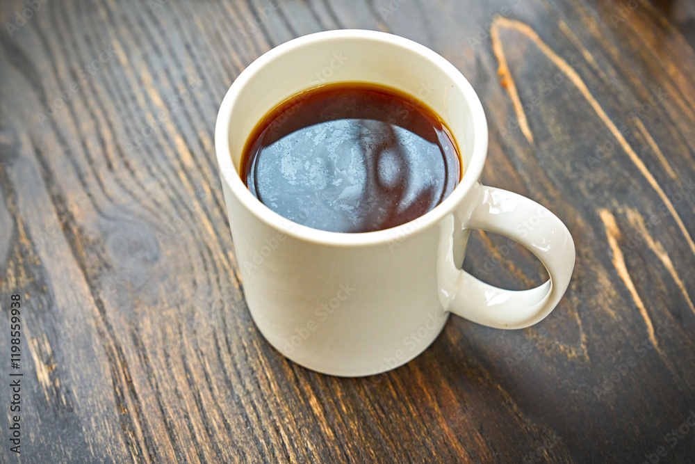 따뜻한 아메리카노 커피가 식탁 위에 놓여 있는 모습