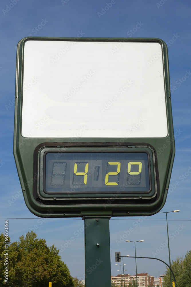 high temperature thermometer. A thermometer with no advertisement showing 42 degrees