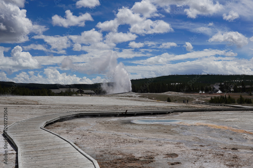 Boardwalk through the Old Faithful geyser basin in Yellowstone