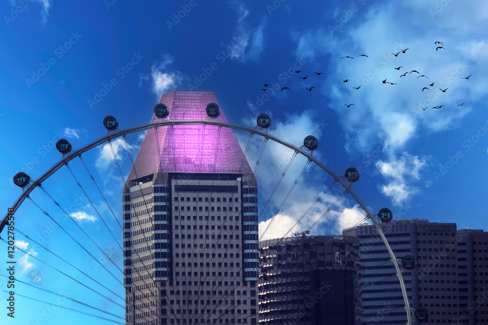 Stunning Cityscape Featuring a Ferris Wheel and Contemporary Modern Architecture Design