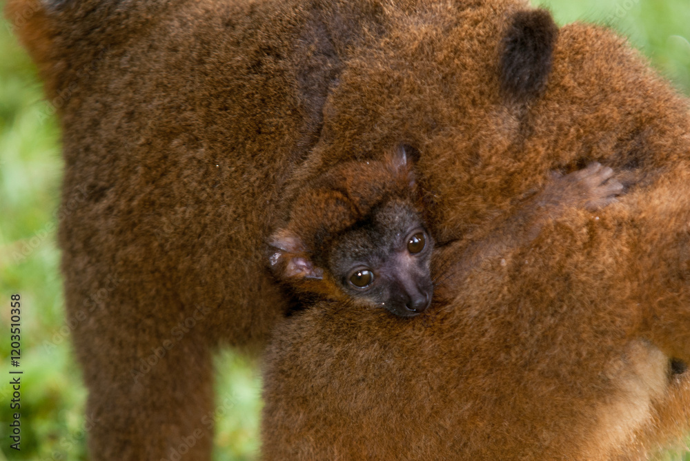 Lémur à collier roux, jeune, Eulemur collaris, Madagascar