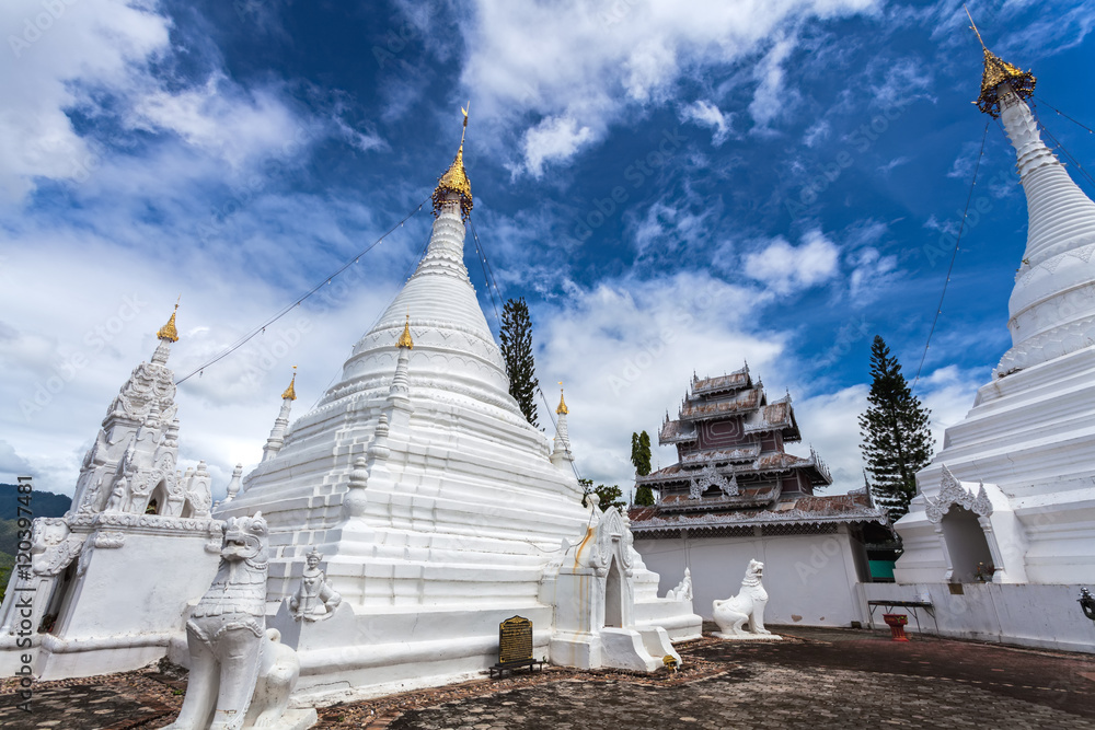 Beautiful of Lanna temple Wat Phra That Doi Kong Mu with blue sky