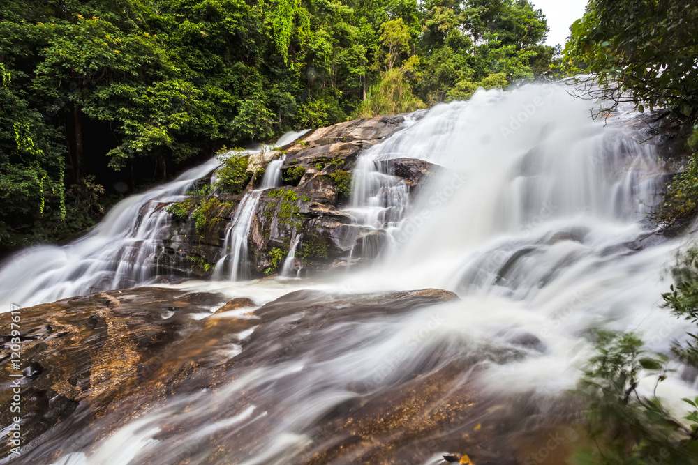 Motion blurred water of Pa Dok Siew Waterfall (Rak Jung waterfall ) beautiful waterfall in deep forest Doi Inthanon national park . Chiangmai , Thailand