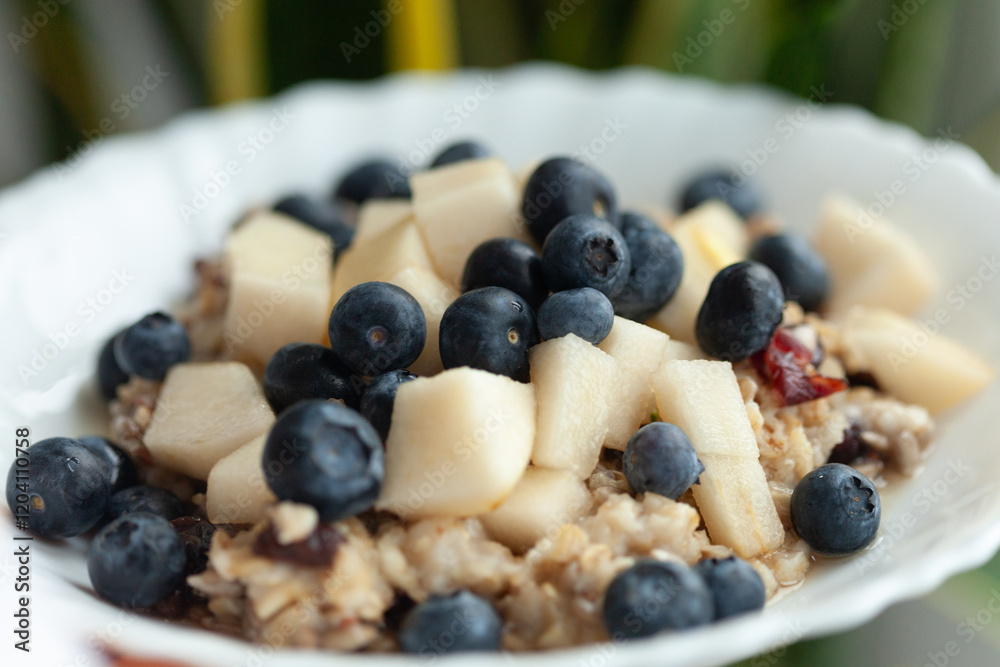 Healthy Oatmeal with Berries and Pear