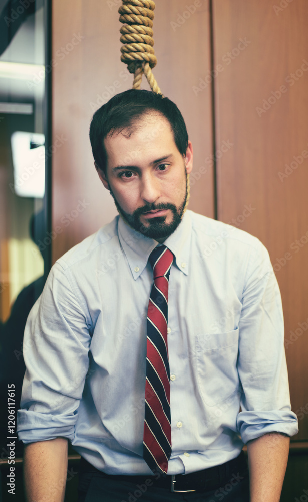 Businessman and noose - conceptual stress imagery