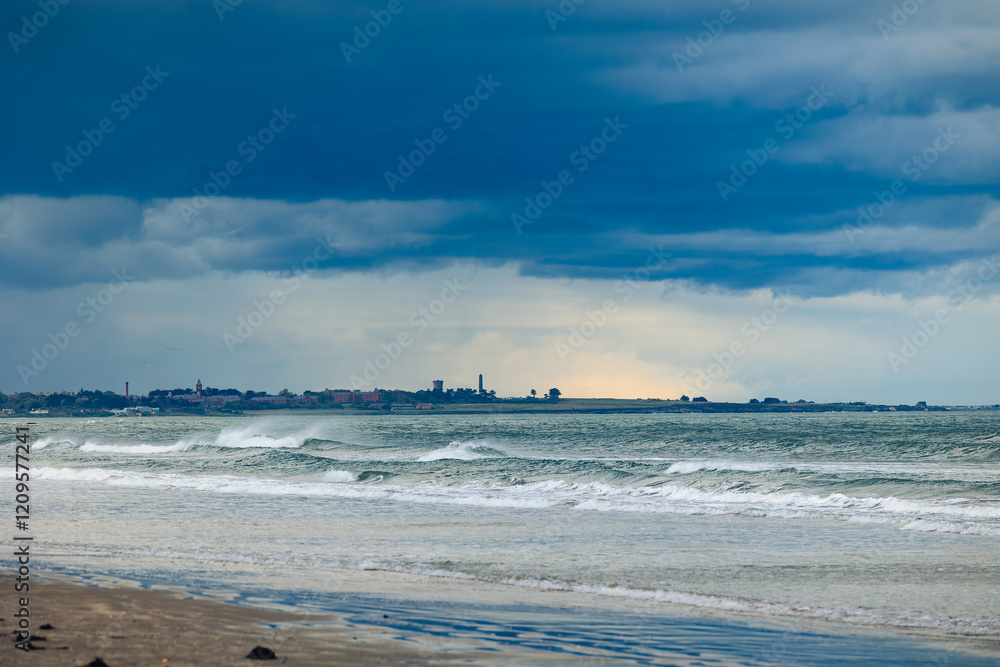 Views while walking on the beach in Portmarnock, on a windy spring day, Ireland
