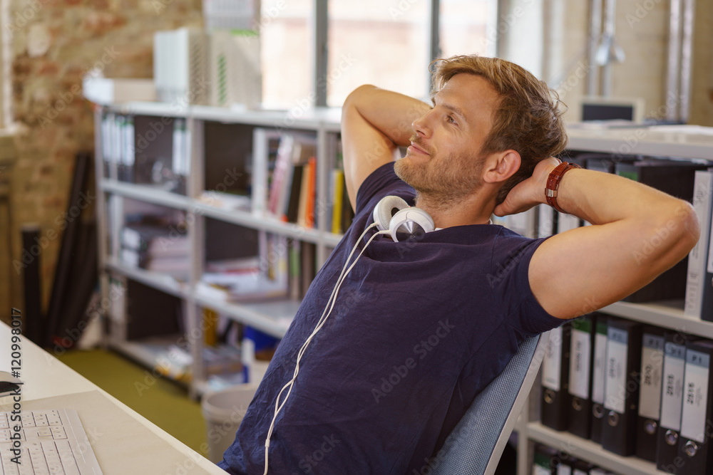 mitarbeiter sitzt entspannt am arbeitsplatz