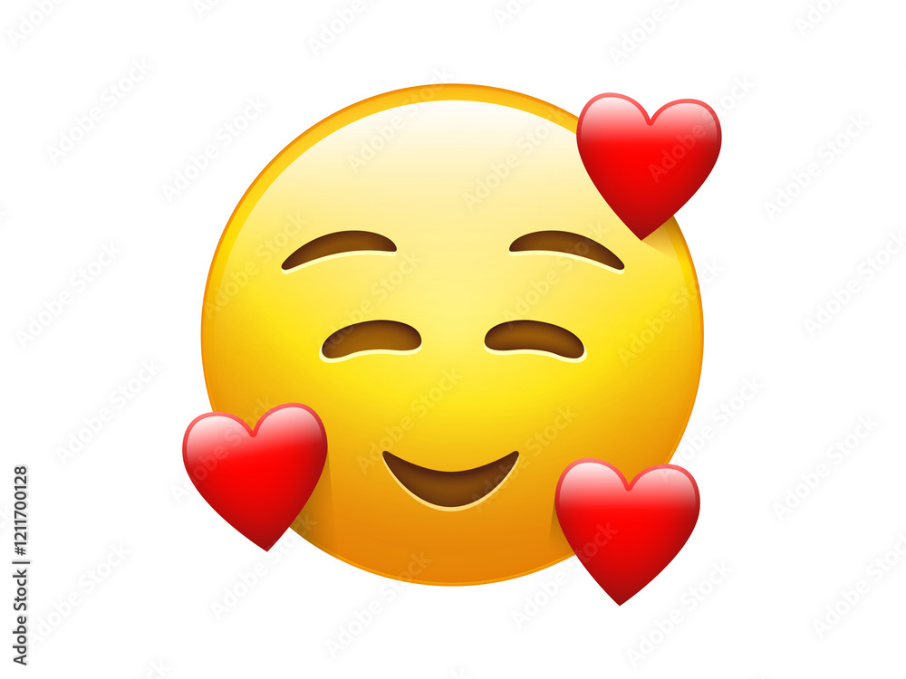 Isolated yellow smiley red cheek face icon with sweet heart.