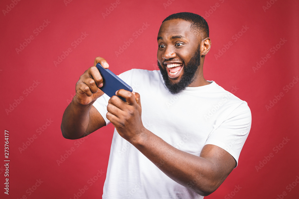 portrait of adult man stand and use mobile phone at home