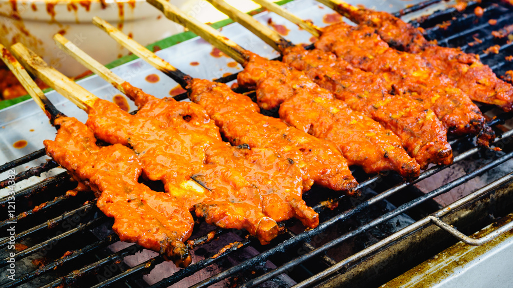 Delicious Asian Cuisine, Thail Style bbq grilled chicken Satay