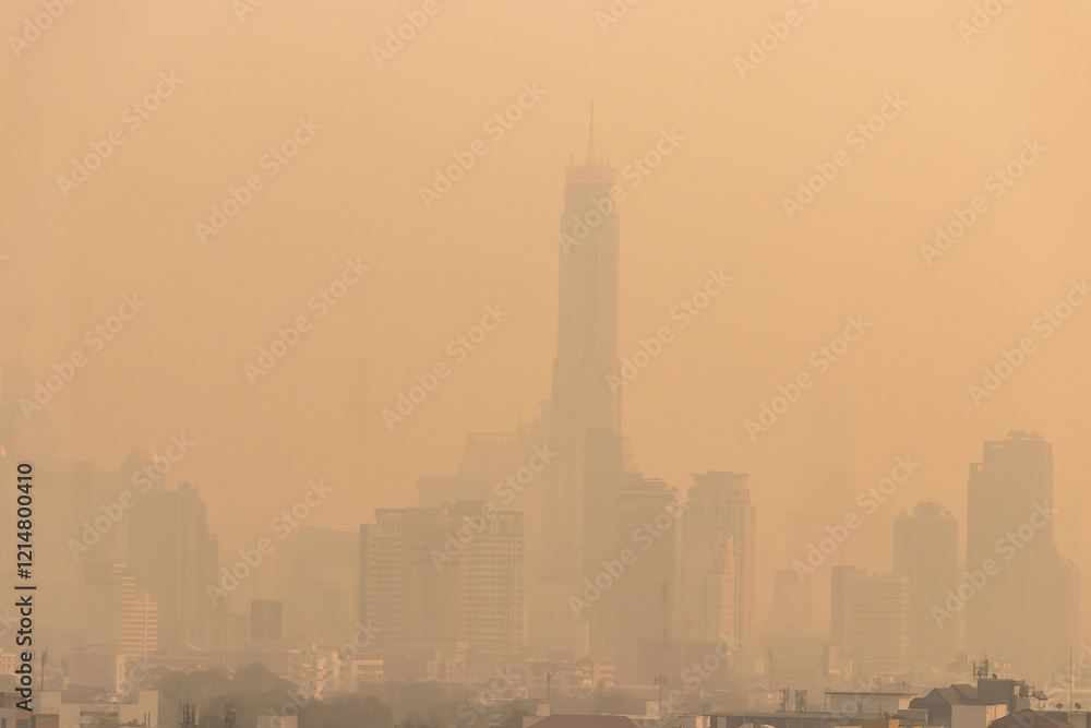 Red or yellow dust pm 2.5 warnings in Thailand, the air pollution from burning agricultural products or various industries affects respiratory.