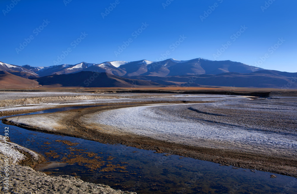 Tso Kar salt water lake in Ladakh, Jammu and Kashmir, India