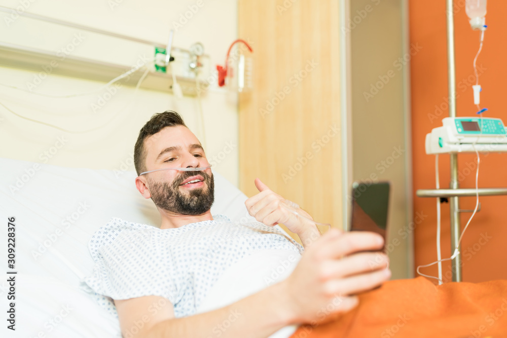 Male adult lying down with medication blister packs and nasal spray on blanket