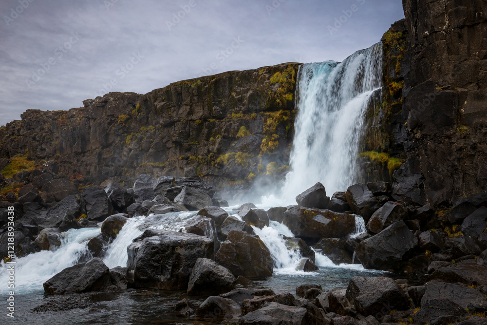 Oxararfoss waterfall in Thingvellir National Park, Iceland