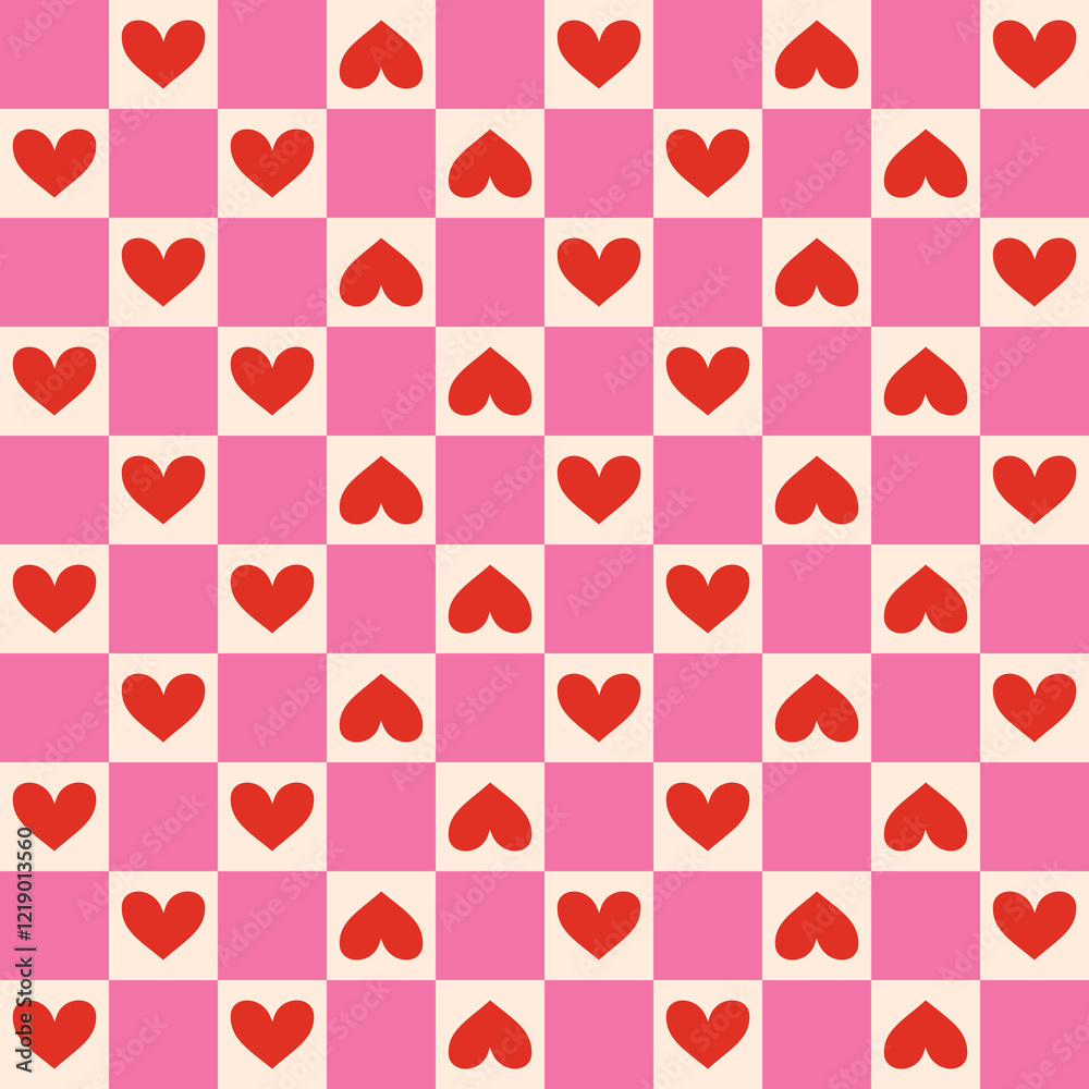 Retro Valentine's Day romantic seamless pattern with cute cartoon hearts. Love background for february 14