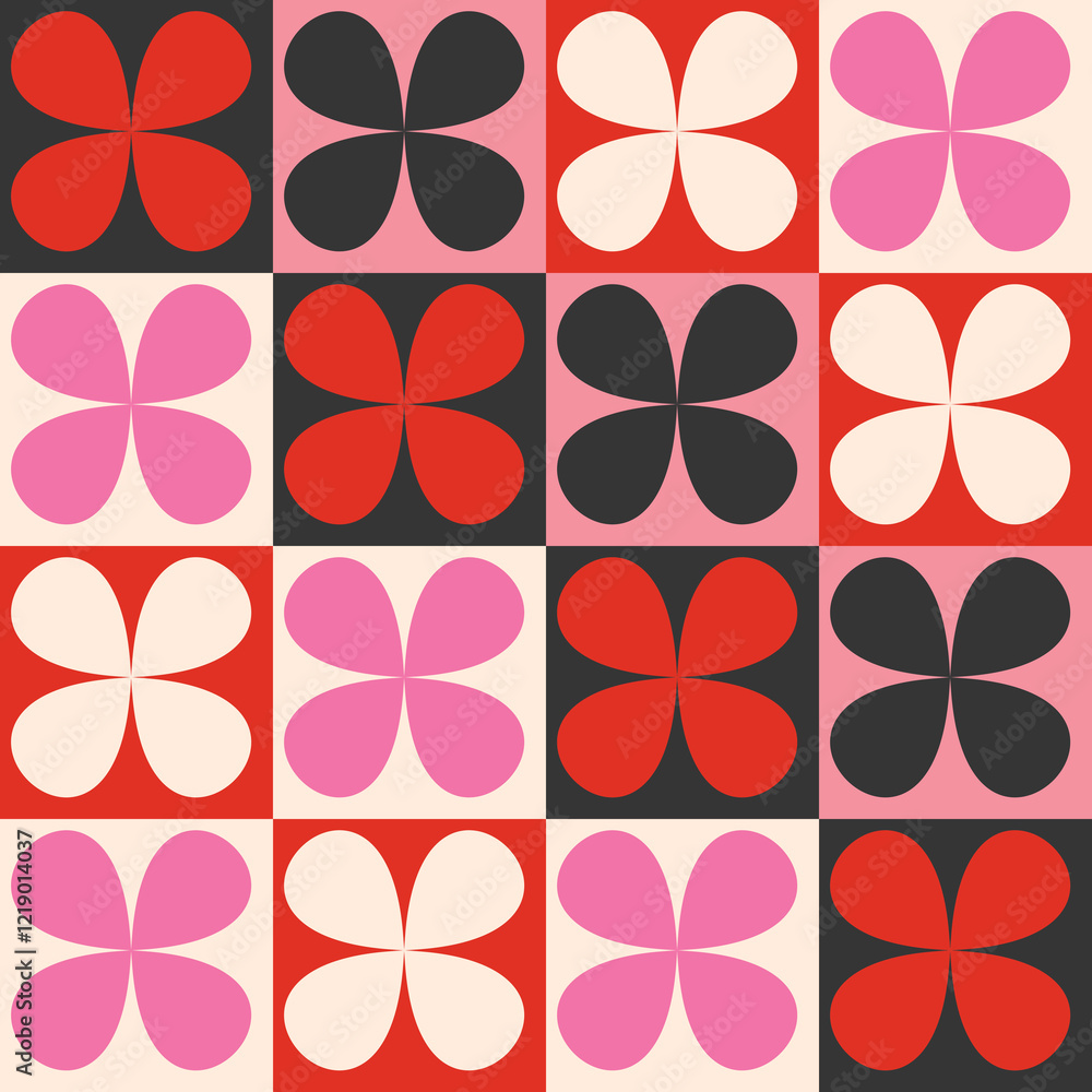Retro geometrical seamless pattern with flowers symbols. Love Valentine's Day romantic background