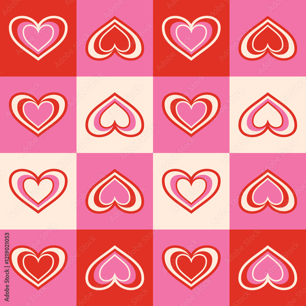 Retro Valentine's Day romantic seamless pattern with cute cartoon hearts. Love background for february 14