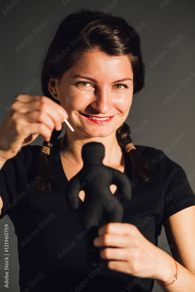 Woman playing with doll