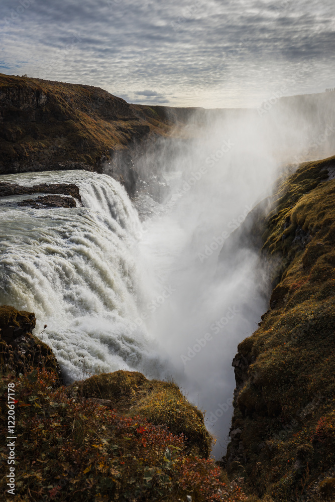 Gullfoss waterfall in Iceland, golden circle attraction.