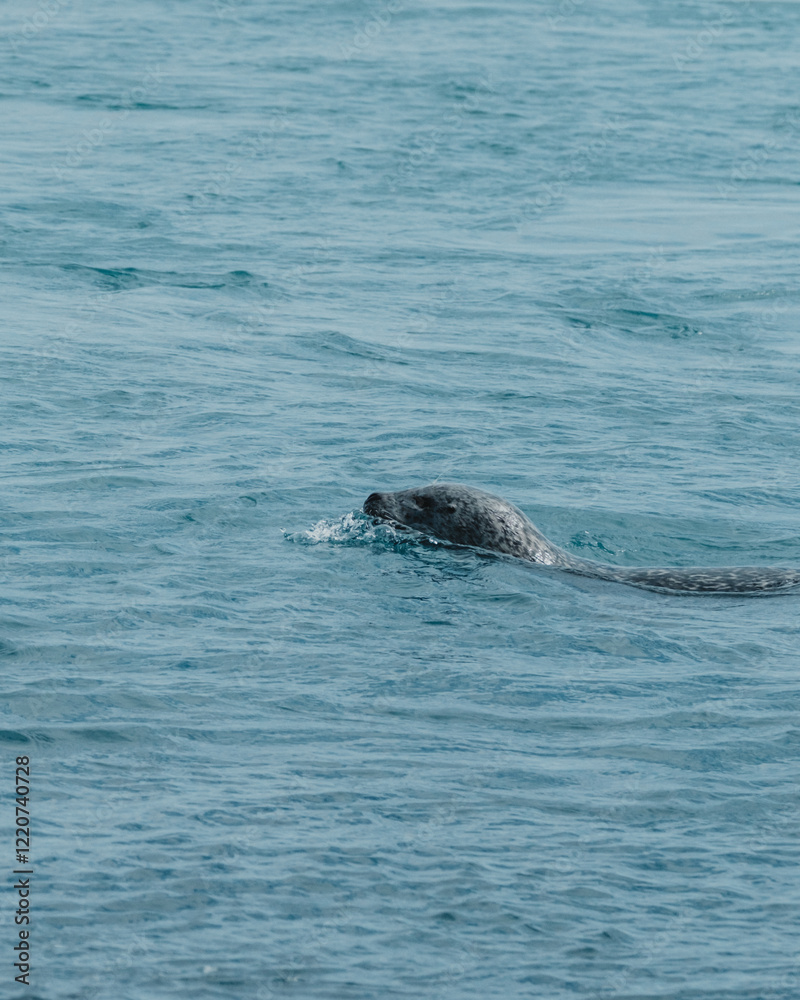Harbor seal swimming near the coast of Breiðamerkursandur, South Iceland.