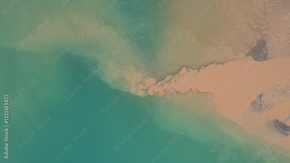 Industrial waste dropped in water and polluting the lake. Industry waste from aggregates pit waste and hazardous materials. Environmental issue around sustainability. Environment problem concept.