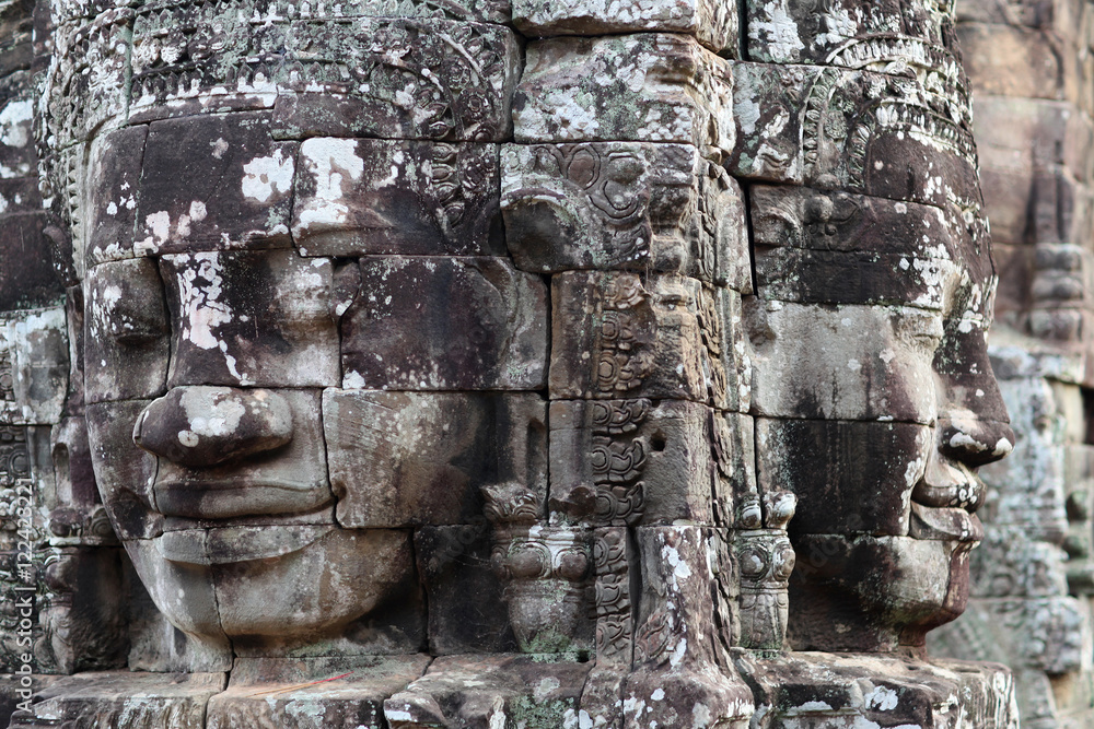 Giant stone faces at Prasat Bayon Temple in Angkor, Cambodia