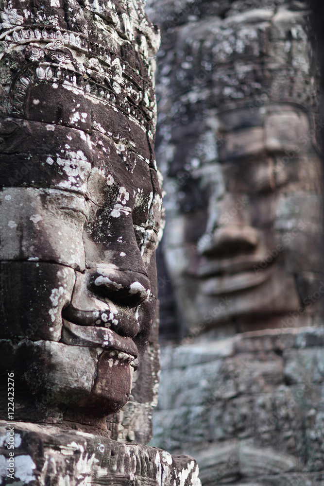 Giant stone faces in Prasat Bayon Temple in Angkor, Cambodia