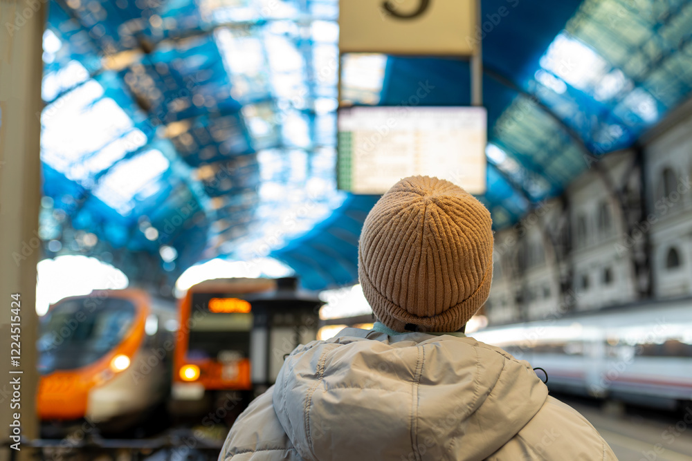 Unrecognizable tourist checking the train schedule at the station