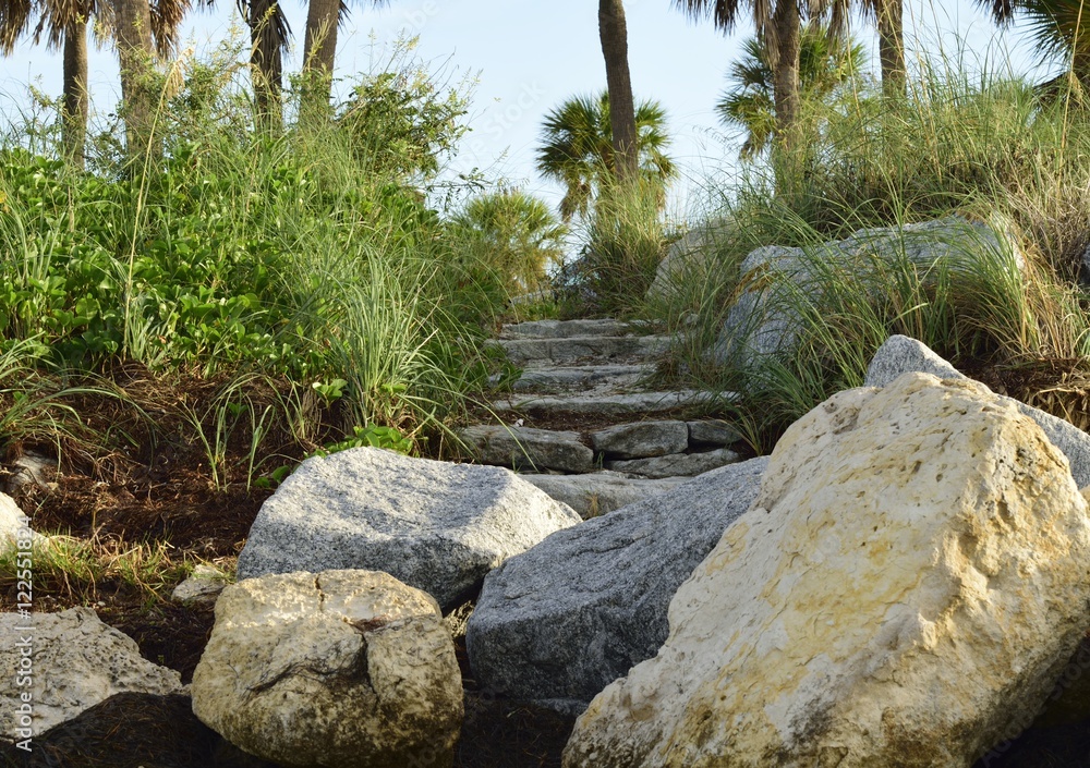Uneven rock stairway to the beach on the Gulf of Mexico.