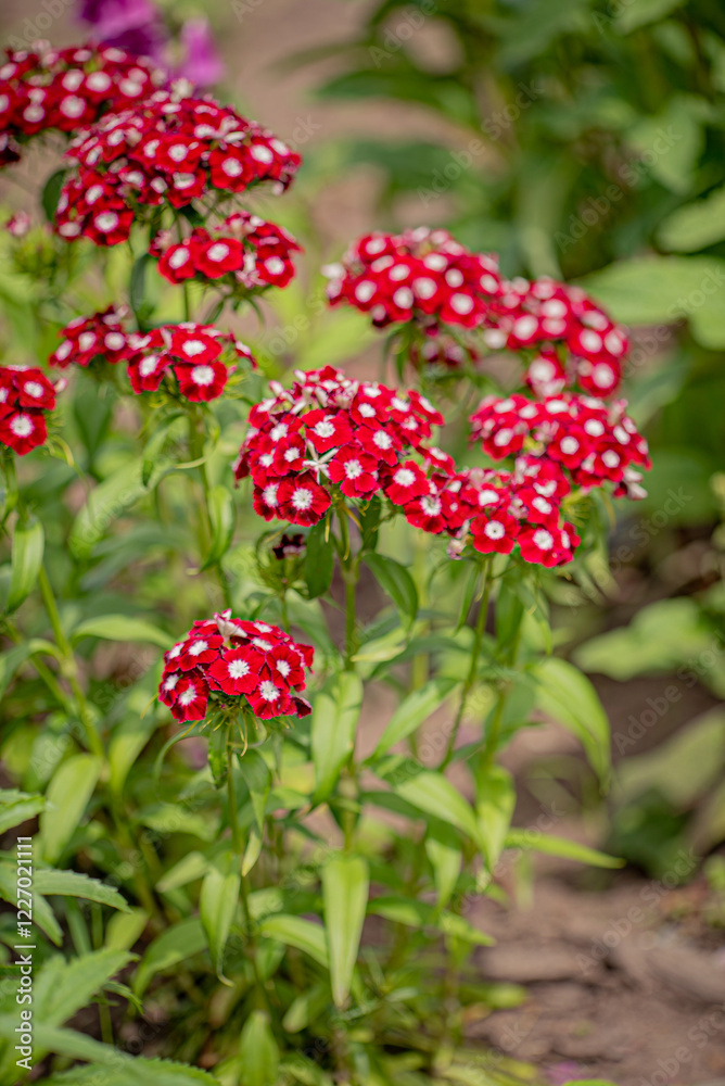 Colorful Dianthus chinensis flowers blooming in the garden.
