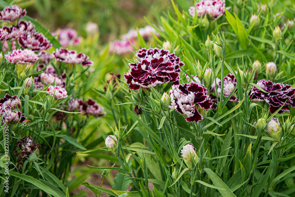 Colorful Dianthus chinensis flowers blooming in the garden.