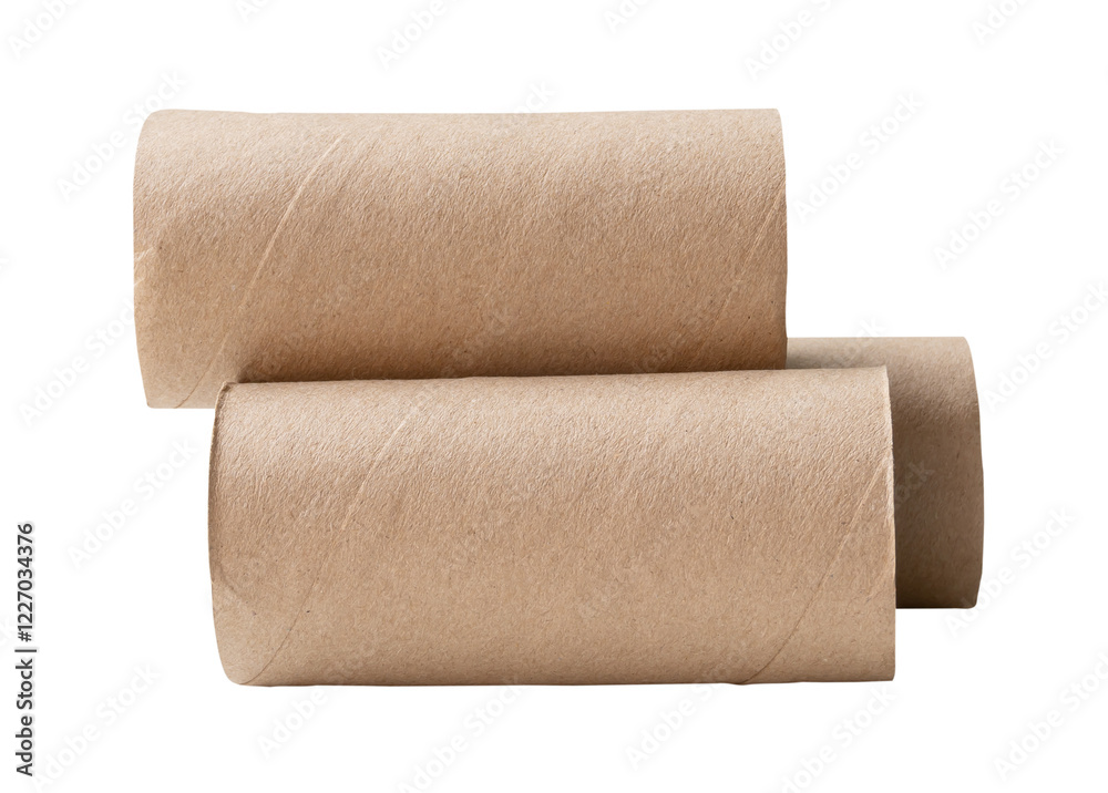 Side view of tissue paper cores or toilet paper tubes in horizon in stack isolated with clipping path in png file format