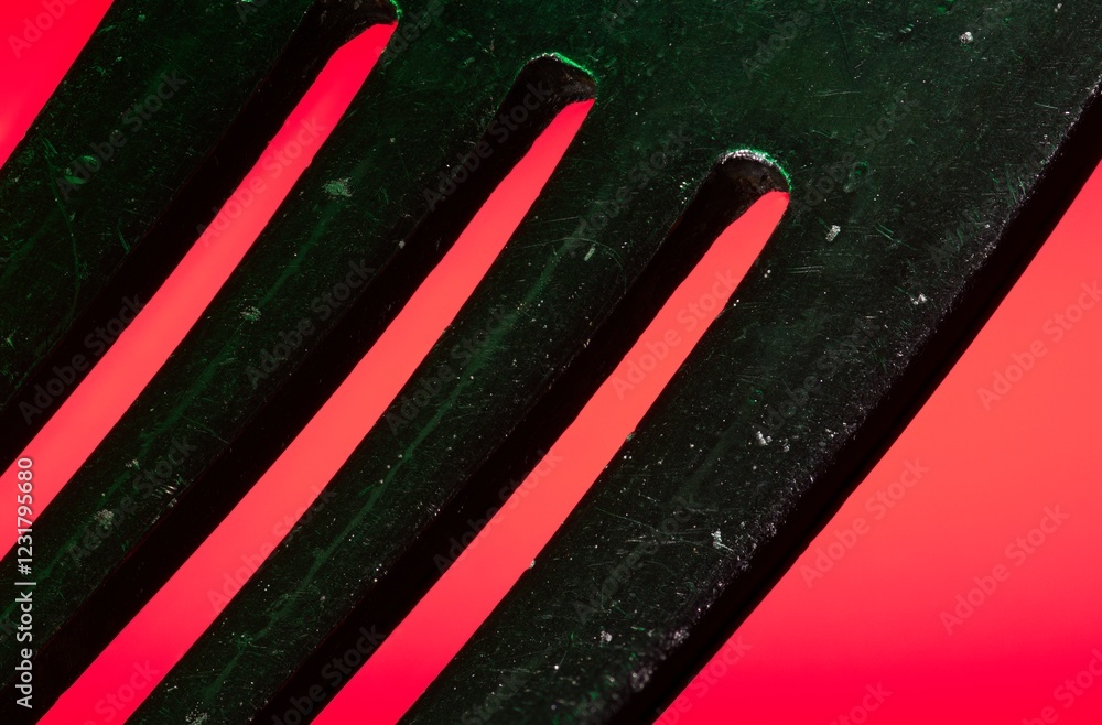 Abstract close up of tines of a fork on red