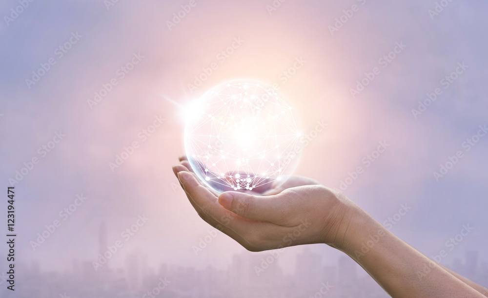 Abstract science, circle global network connection in hands