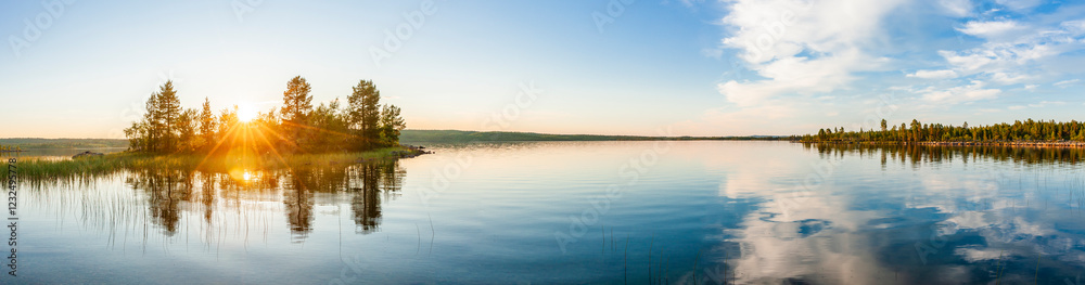 See bei Sonnenuntergang im Finnischen Lappland im Sommer